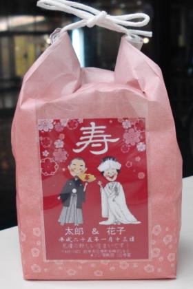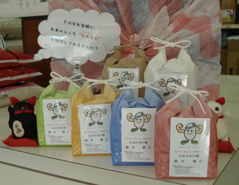 お米名刺は、ミニクラ袋に名刺ポケットをつけたものです! 3合(450g)と重量感があります。袋は6種類ご用意!! うめ・わかくさ・やまぶき・あいの4種類は柄つきでオシャレです。